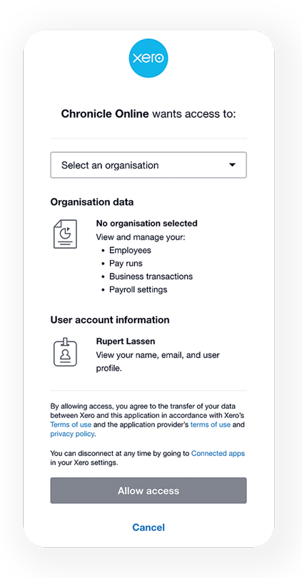 Allow Chronicle Access to Xero